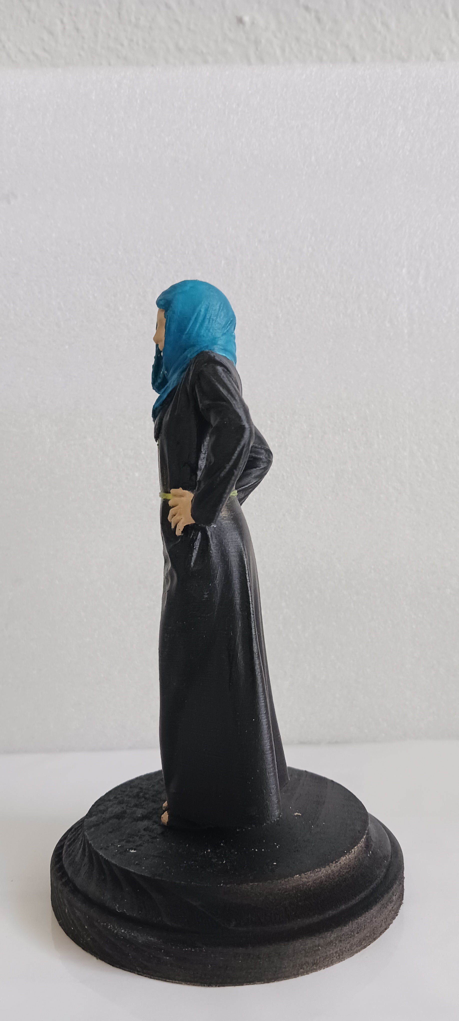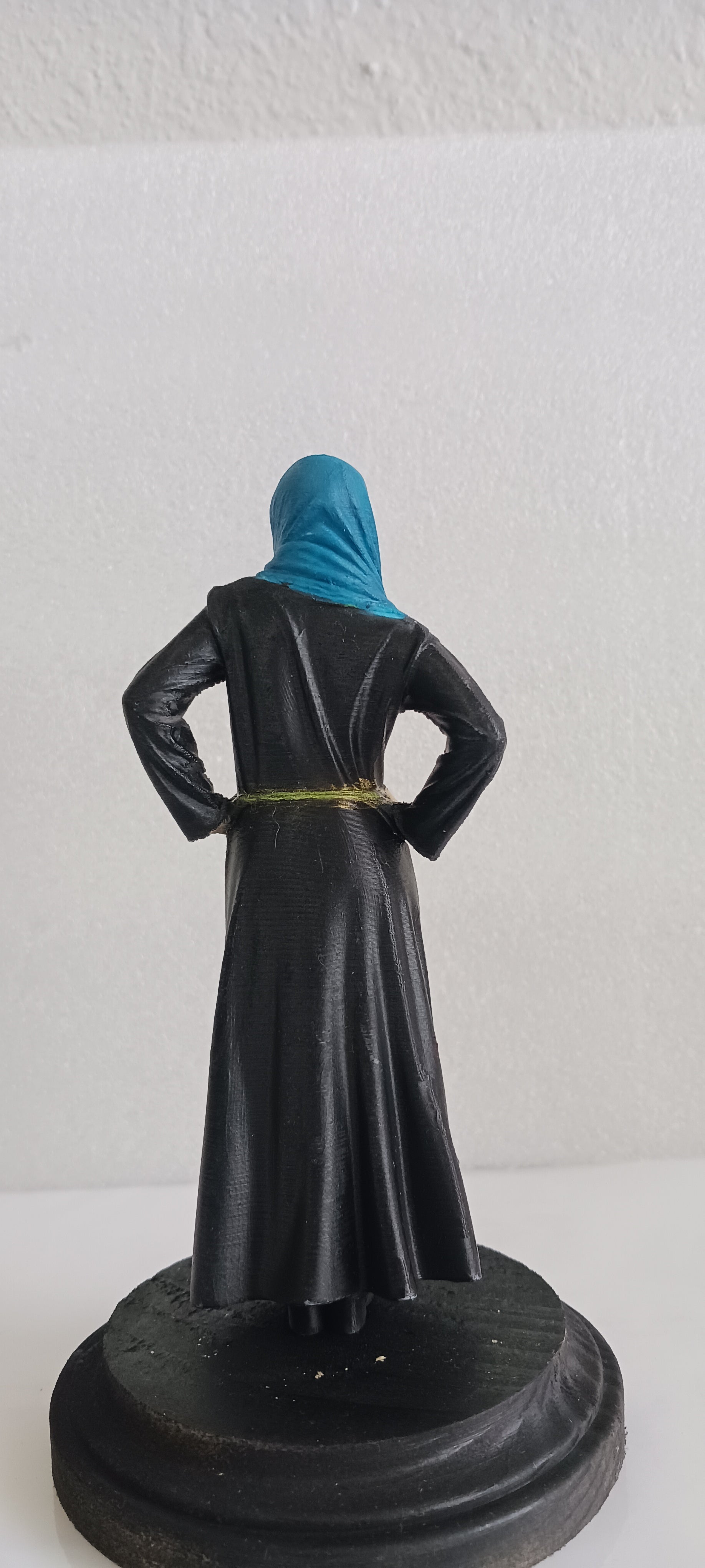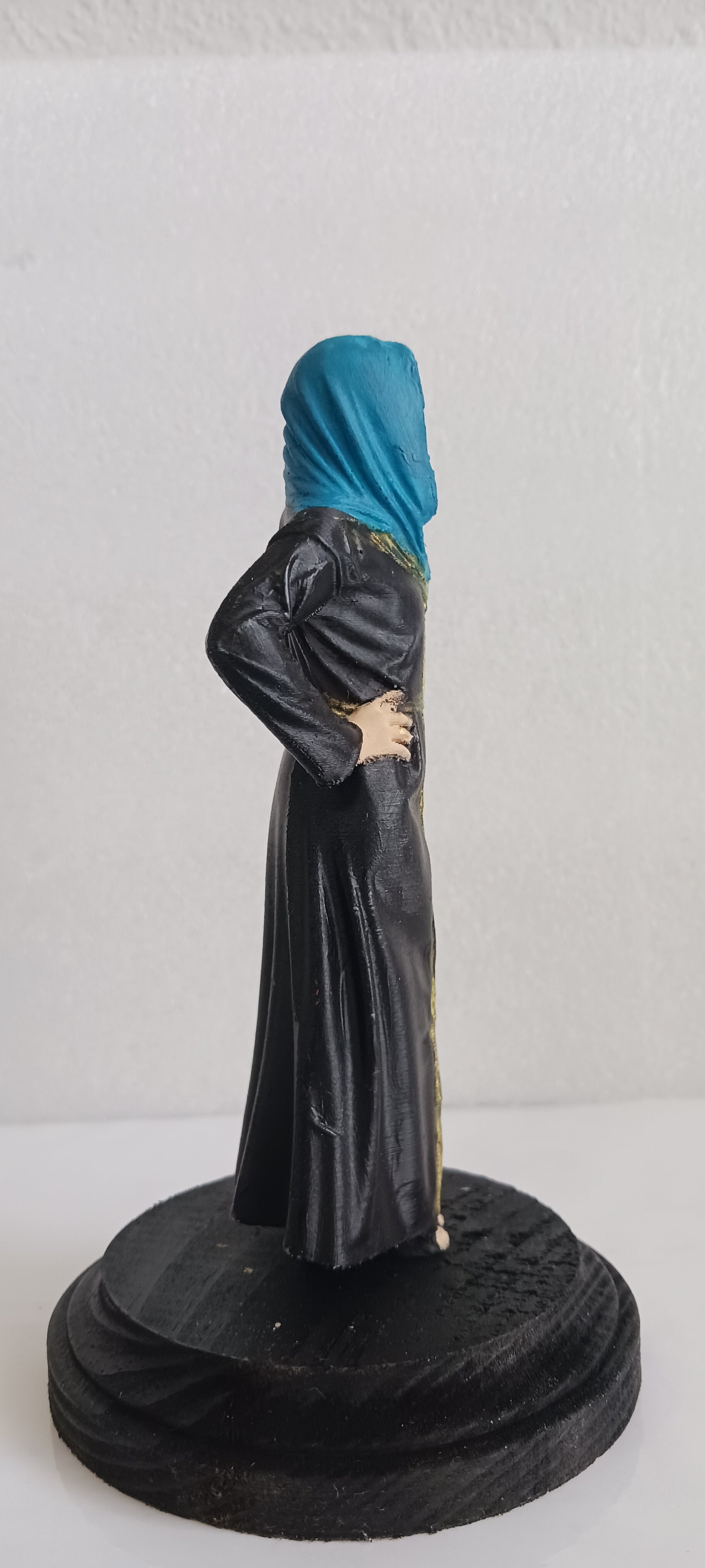 Una exquisita miniatura de una mujer árabe luciendo un vestido espectacular, digno de la ocasión, impresa en PLA.